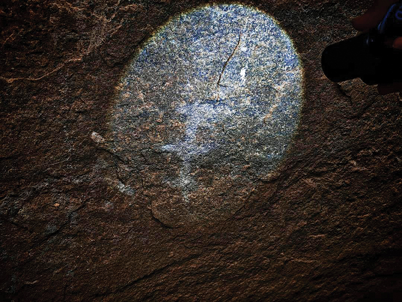 The paintings include human figures, animals, geometric patterns and symbolic motifs, suggesting ritual practices, storytelling and shared cultural memory. “If Tantirimale functioned as a common meeting place for independent territorial groups,” Dr. Rathnayake observes, “then these images may represent a shared visual narrative — a way of communicating identity and belief beyond spoken language.”