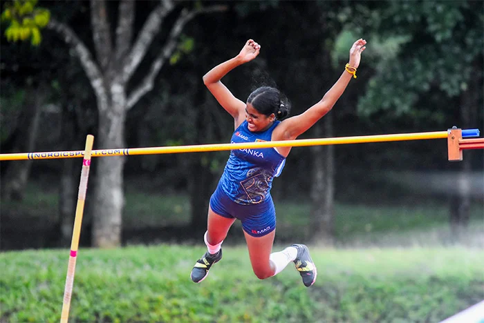 Nesarasa Daksitha cleared 3.40 metres to win the women’s pole vault.