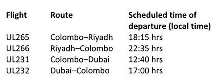 09 March 2026; Colombo – SriLankan Airlines would like to inform passengers that it is resuming daily services to Riyadh tonight and Dubai tomorrow, while continuing to closely monitor the situation in the Middle East and prioritising the safety and wellbeing of its passengers and crew.