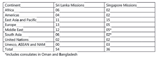 I was astonished that Singapore does not have an embassy in Colombo despite the two countries’ close relations. A review of the Singapore foreign ministry website indicates that the Ambassador appointed to Sri Lanka is based in the Foreign Ministry in Singapore. The schedule given in the article shows the number of Embassies and High Commissions that Singapore has worldwide against what Sri Lanka has. It is evident that the visionary leaders of Singapore have once again made a dispassionate decision about establishing overseas missions based on commonsense, prudence and need.