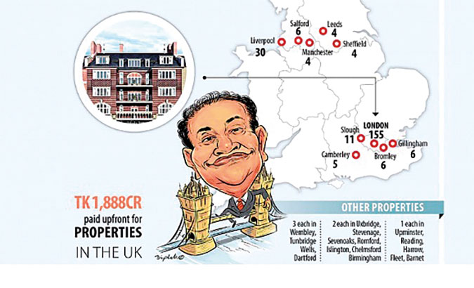 The Star also carried a remarkable exposé of the Bangladeshi Minister of Lands, Saifuzzaman Chowdhury Javed, who apparently owns more than 260 properties in the UK worth about GBP 135 million, and most of them are in London. Mr. Javed is a three term MP, now running for the fourth time. The Star’s cartoon (reproduced on this page) is quite an attention grabber in the world of political money making.