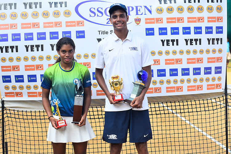 Thehan Wijemanne and Dinara de Silva won the men’s and women’s singles titles of the YETI-SSC Open Tennis Championship continued in Colombo on Sunday.