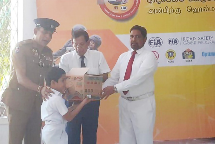HELMET – IF YOU LOVE. UN/ FIA Road Safety Programme was conducted at Science College, Templers Road, Mt. Lavinia to educate children, parents, teachers and motorcyclists on the importance of children wearing Helmets. The event was organized by LOLC in collaboration with the Traffic Police, Mt. Lavinia and City Traffic, Colombo. Children who were wearing helmets and dropped by the parents were given a cash award and a selected few children who were not wearing helmets were given brand new helmets in the HELMET – IF YOU LOVE PROGRAMME. The Mt. Lavinia Police, the principal and teachers of Science College helped to make this event a success.