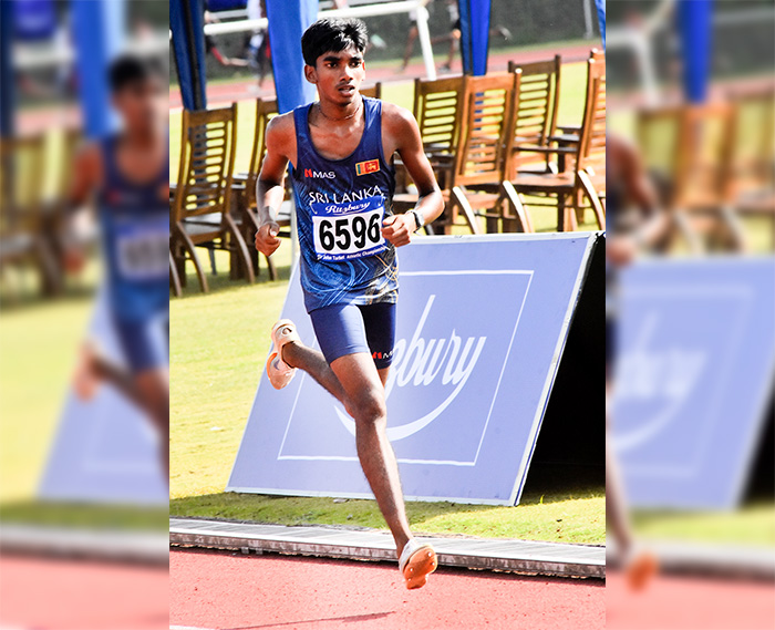 Achintha has established meet records at almost every local meet he has taken part in. His best performance this season came when he clocked sub four minutes to win a bronze medal in the 1500 metres at the Asian Youth Athletics Championship in Dammam, Saudi Arabia early this year. (RF)