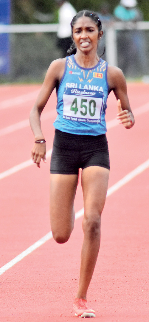 The 16-year-old cruised to a stunning 3:53.05 seconds finish, the fastest time by a youth athlete in Sri Lanka in two decades, to win the Under 18 1500 metres.