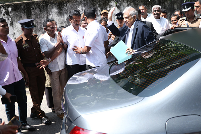 Wickremesinghe walking towards Colombo Fort Magistrate’s court