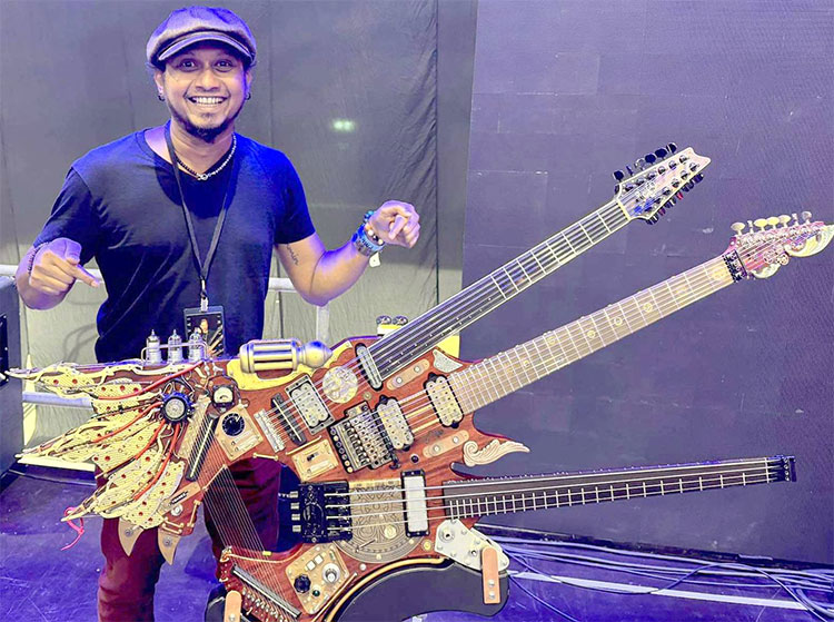 - Nisha Peiris with guitar maestro Steve Vai – a three-time Grammy Award winner and 15- time nominee