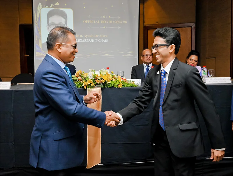 Rotarian Ayesh De Silva (right) has been formally appointed as the Membership Chair for the Board Year 2025–2026 by the District Secretary of Rotary District 3220 Sri Lanka and the Maldives, Rtn. Dinesh Kumar. In addition to this appointment, Rtn. De Silva also had the honour of serving as the Master of Ceremonies at the Rotary Club of Colombo Centennials’ 20th Anniversary Celebration and Transition Meeting, held on 13th July, 2025, at Colombo Ramada.