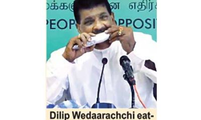 Former State Minister of Fisheries, Dilip Wedaarachchi yesterday ate raw fish, during a press conference in Colombo, in a bid to prove that fish eating did...