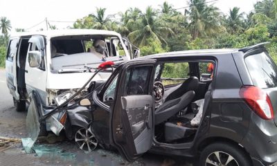 A head-on collision, involving a car and a van at Navadankulama, Mundalama, along the Puttalam–Colombo main road, in the early hours of yesterday (12), claimed the...