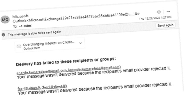 In December 2023, I reported such an incident, related to a private commercial bank listed in the Colombo Stock Exchange, to the Ombudsman Ananda Kumaradasa, but he never replied to my mail, instead I got the following automatic reply. (See figure 1)