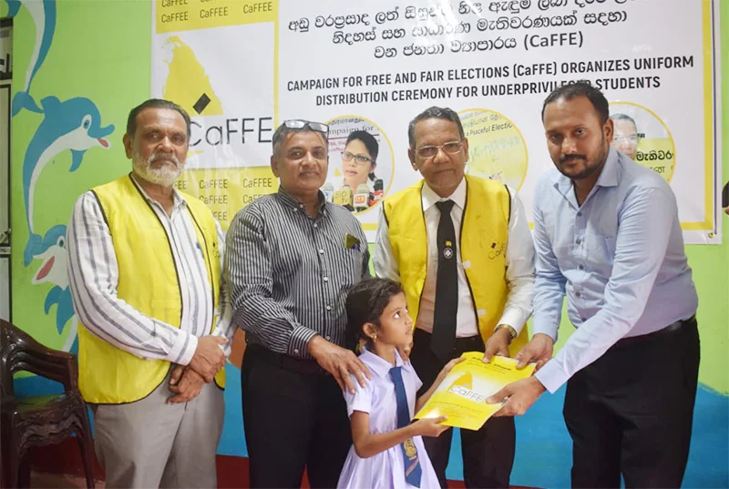 The Campaign for Free and Fair Elections (CaFFE) gifted individually tailored uniforms to the 55 students of Iyankerny Hisbullah Vidyalaya Eravur, Batticaloa, recently.