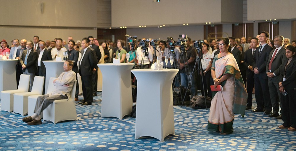Diplomats spouses added glamour to the evening, donning elegant in their national attire in soft pastels and flowing evening gowns, while Sri Lankan invites matched the charm with sarees in refined skills and minimalist couture. (ZC)