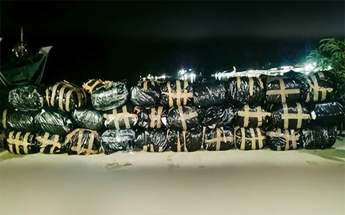 The search was conducted by SLNS Edithara II, attached to the Western Naval Command, off the Kudiramalei Point, where 64 suspicious parcels floating in the sea were retrieved. The parcels contained about 2129kg (wet weight) of Tendu leaves and 9980 foreign fags believed to have been smuggled into the country.