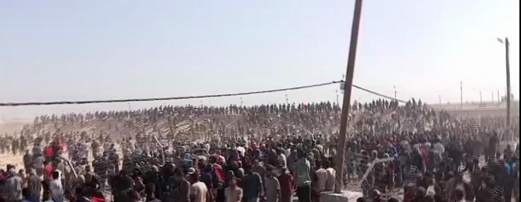 “The situation was extremely difficult. They only allowed 50 people to cross at a time,” one man told BBC Arabic’s Middle East daily radio programme. “In the end, chaos broke out – people climbed over the gates, attacked others, and took all the [aid].”