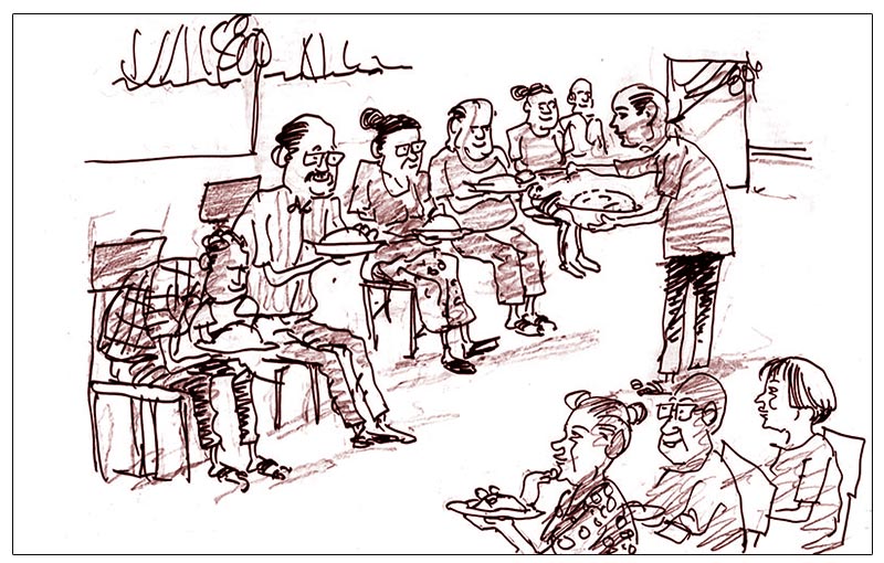 Another national feature of long ago could be a source for dansal. In ancient times people in this country travelled distances which could not be tackled by walking, in bullock carts. Wayside ambalamas were temporary shelters for such travellers. Thus maybe, villagers along routes would look out for long distance travellers and serve them meals, if they were not equipped to cook their own. Isn’t the latter manner of being self-sufficient in food resorted to by our rural folk, even urban, who go on pilgrimage in buses and vans? They stop about an hour before meal time and while the men bathe in rivers or wewas and perchance imbibe, the cooks make hearths and cook food for the travellers.