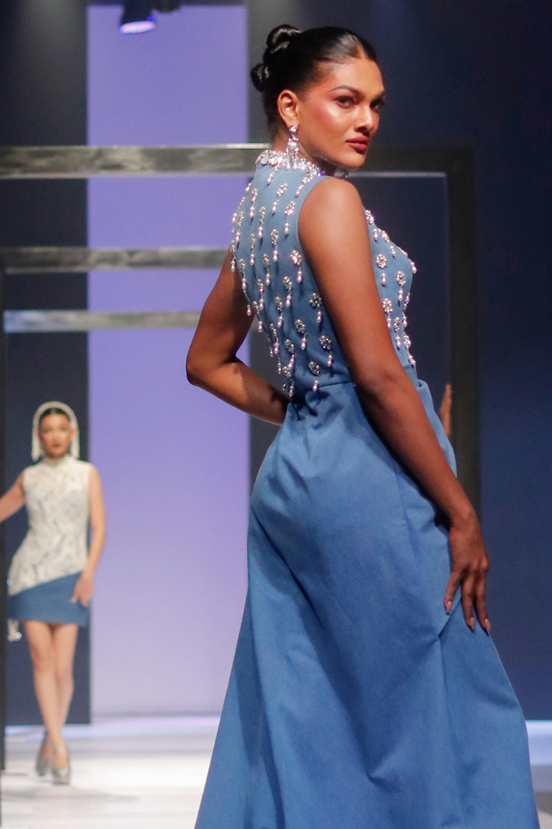 At Colombo Fashion Week Aslam Hussein brought denim out of its everyday comfort zone into a world of glamour, redefining what casual luxury can look like on a runway.