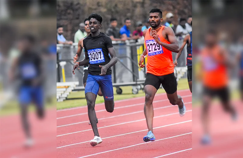 Aruna Dharshana returned to form with a sub 46 seconds feat, emerging sprinter Kalhara Idupa turned tables on veteran Kalinga Kumarage as the men’s 400 metres produced a thrilling climax on the final day of the 103rd National Athletics Championship at Diyagama on Sunday.