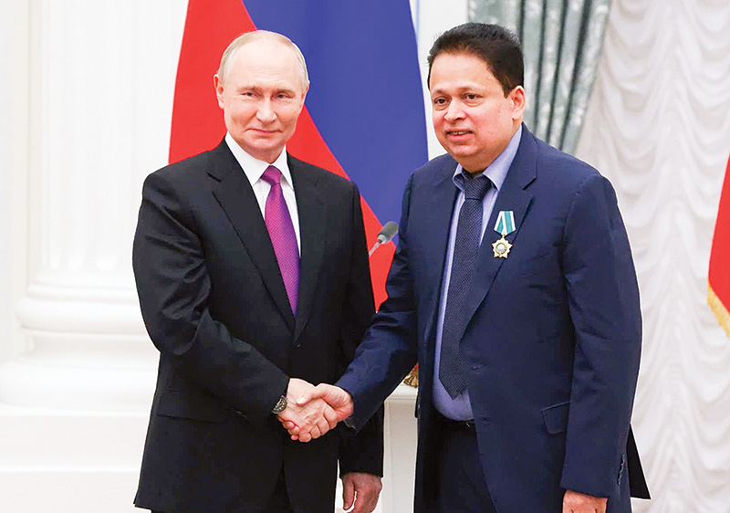 Dr. Saman Weerasinghe has been awarded the Order of Friendship (Orden Druzhby) by Russian President Vladimir Putin at the Kremlin, in Moscow. The honour, one of Russia’s highest civilian distinctions, recognises his decades of dedication to strengthening diplomatic, cultural, and economic ties between Sri Lanka and Russia.