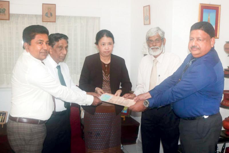 The cheque was handed over to the Ambassador of Myanmar to Sri Lanka, Daw Marlar Than Htaik. By SLEDS President Ayodhya Sampath de Silva, Secretary to the Boaerd Secretary Nandalal Premarathna, Consultant to the Tissue Bank, Hemaka de Mel and the Senior Manager of the Eye Bank J.S. Mataraarachchi were also present at the occasion.