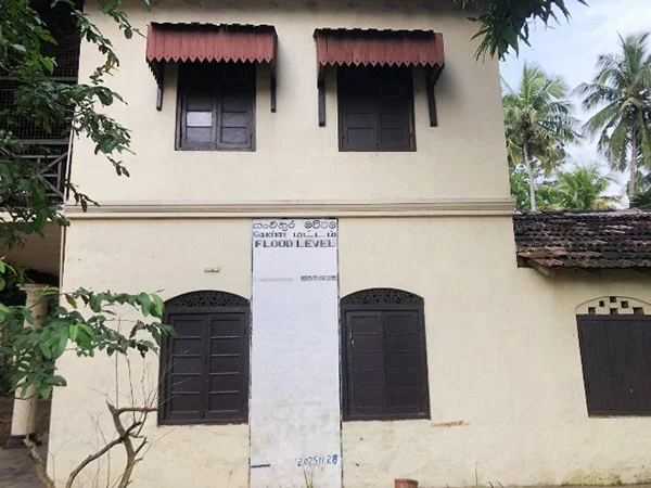 As Cyclone Ditwah came along, the current resident of the house was not going to break this seven-decade-old tradition. After the flood receded this time, this duty-bound resident drew a line in blue ink and wrote at its end, ‘2025-11-28’, his contributing epitaph reminding us of infamous day Ditwah showed her might by driving the river off its banks. (See picture)