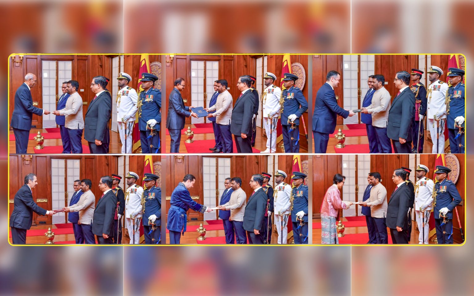 Five newly appointed ambassadors and one high commissioner to Sri Lanka officially presented their credentials to President Anura Kumara Dissanayake at the Presidential Secretariat on Thursday (24) morning.