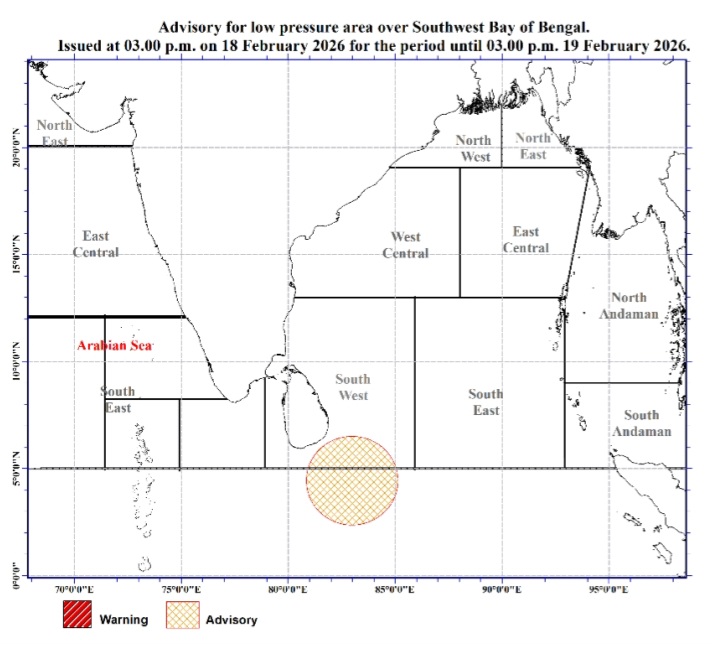 Advisory for low pressure area in the Southwest Bay of Bengal to the south-east of Sri Lanka