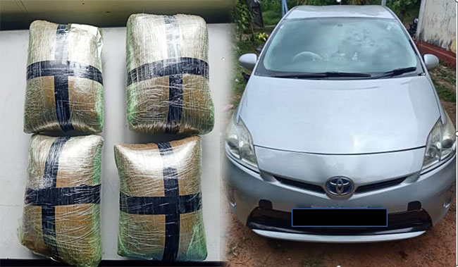 Acting on a tip-off from the public, police commandos on Sunday (10) arrested a person opposite a supermarket in Elakanda, Hendala. They recovered 4 kg and 329 g of crystal methamphetamine known as ice. The STF later handed over the 35-year-old suspect identified as a resident of Chawakattu, Mannar, to the Police Narcotics Bureau (PNB) for further investigation, along with his vehicle where the drug consignment was found.