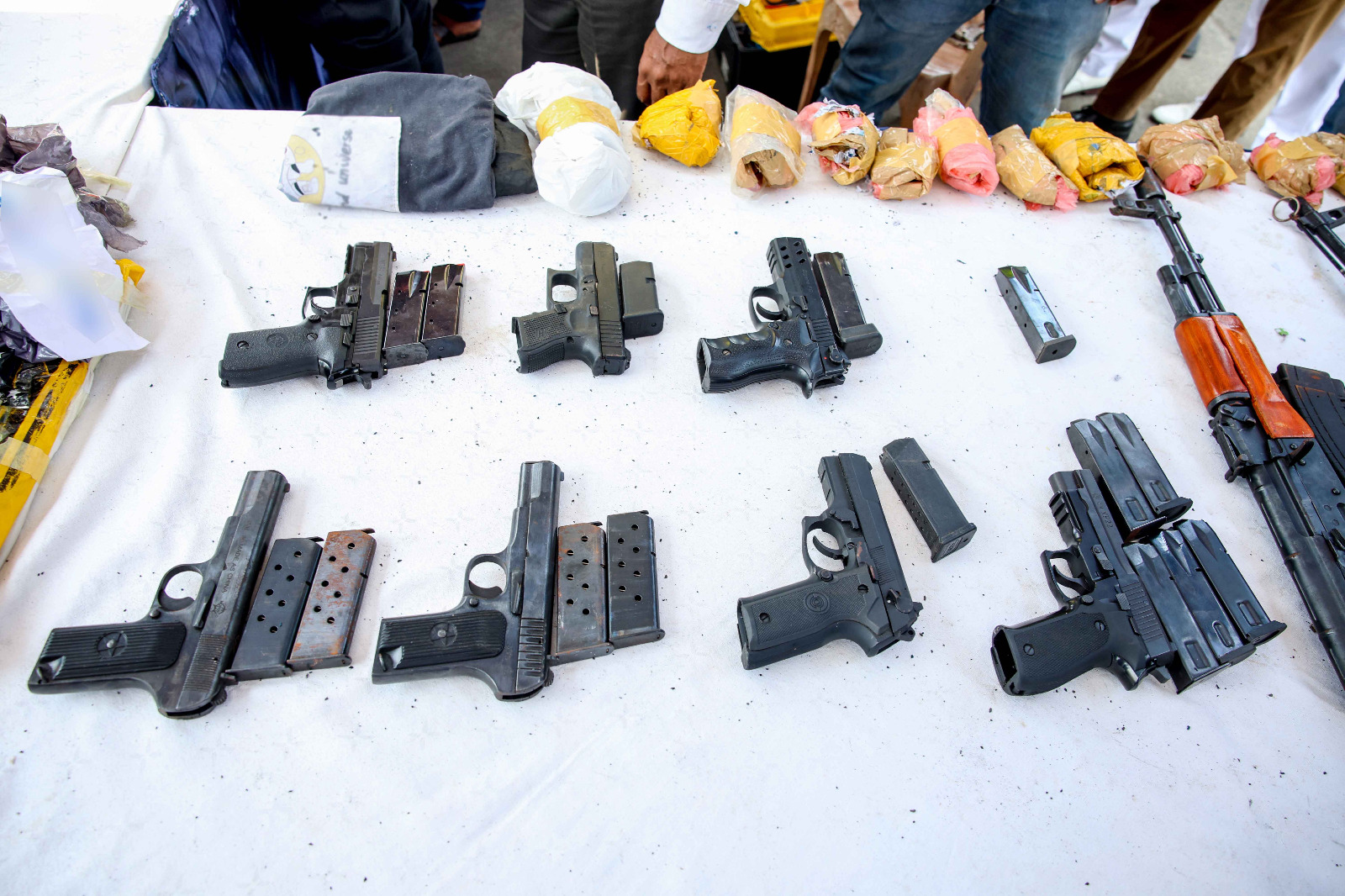 After a meticulous examination the Police Narcotic Bureau (PNB) detected 478kg of crystal methamphetamine, 176kg of heroin as well as 03 mechanical weapons, 08 sidearms and