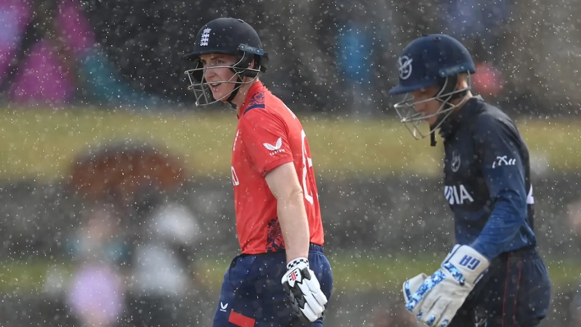 Harry Brook’s unbeaten 47 off 20 balls and Jonny Bairstow’s 31 off 18 steadied them from a perilous 13 for 2, the pair sharing a 56-run stand for the third wicket to help lift their side to 122 for 5. With Namibia chasing a DLS-adjusted target of 126, England’s bowlers didn’t allow them to score fast enough and secured a comfortable victory, after a torturous wait.