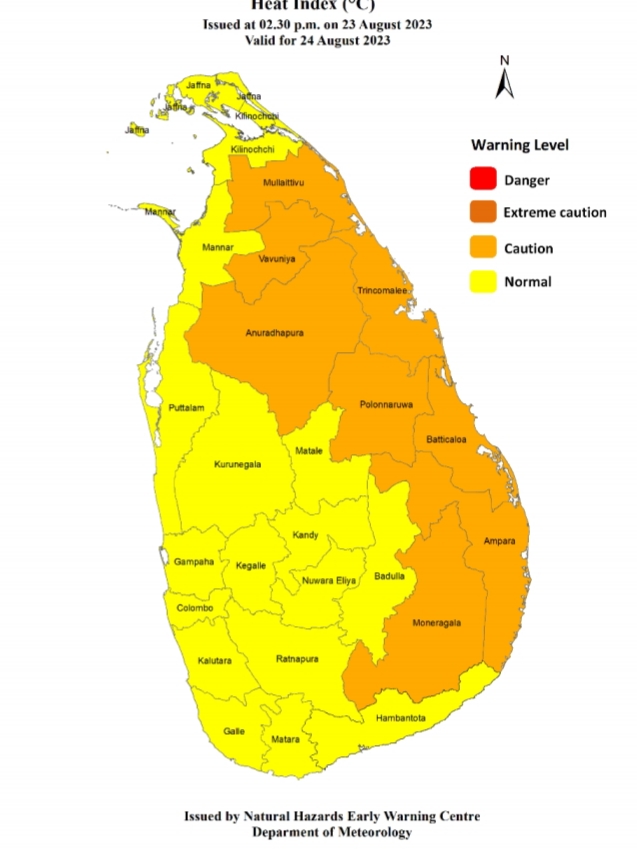 Heat index Advisory Issued by the Natural Hazards Early Warning Centre At 02.30 p.m. 23 August 2023, valid for 24 August 2023