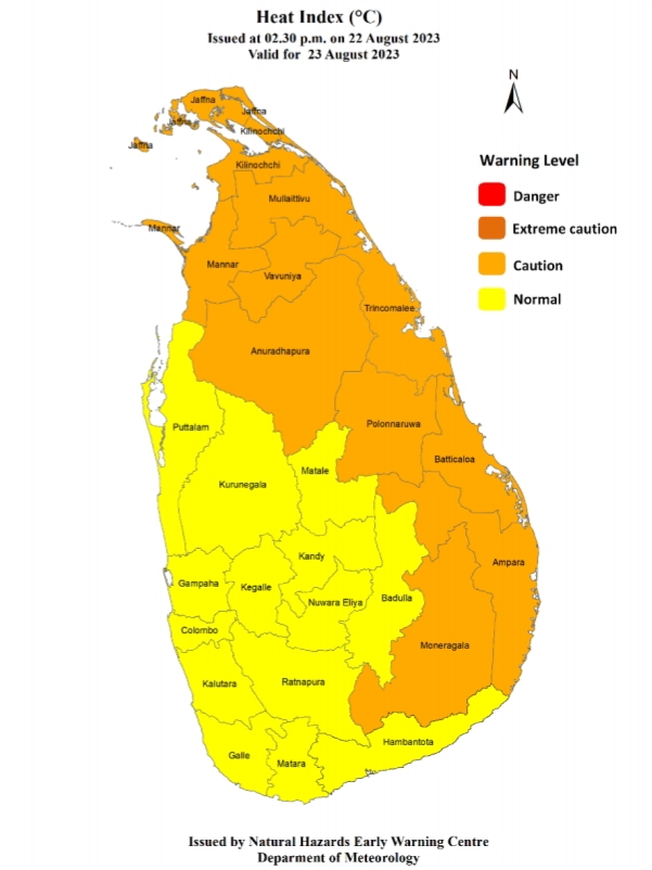 Heat index Advisory Issued by the Natural Hazards Early Warning Centre At 02.30 p.m. 22 August 2023, valid for 23 August 2023