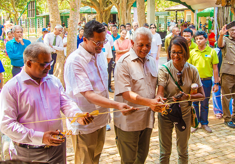 - Dr. Sumith Pilapitiya and Dilmah Ceylon Tea Chairman Dilhan C Fernando at the ribbon cutting ceremony at the Elephant Knowledge Walk Centre. Also in the picture National Zoological Gardens Director General Ranjan Marasinghe and Biodiversity Sri Lanka Senior Advisor Shiranee Yasaratne