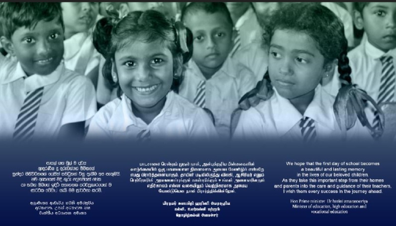 Prime Minister and Minister of Education, Higher Education and Vocational Education Dr Harini Amarasuriya said that she hoped that the first day of school becomes a beautiful and lasting memory in the lives of our beloved children as they take the important step from their homes and parents into the care and guidance of their teachers and wished them every sucess in the journey ahead.