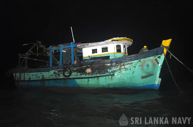 During an operation conducted on Monday night (21), the Navy apprehended a fishing boat, along with four fishermen, north of Mannar, for poaching.