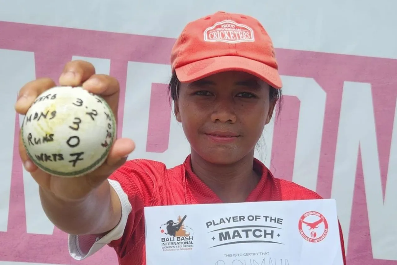 On Wednesday, Indonesia posted 151 for 5 on the back of opener Ni Putu Ayu Nanda Sakarini’s 61. In reply, Mongolia were bowled out for 24. Rohmalia picked up a wicket with her first ball and, overall, bowled just 3.2 overs, not conceding a run. She dismissed seven batters for ducks.