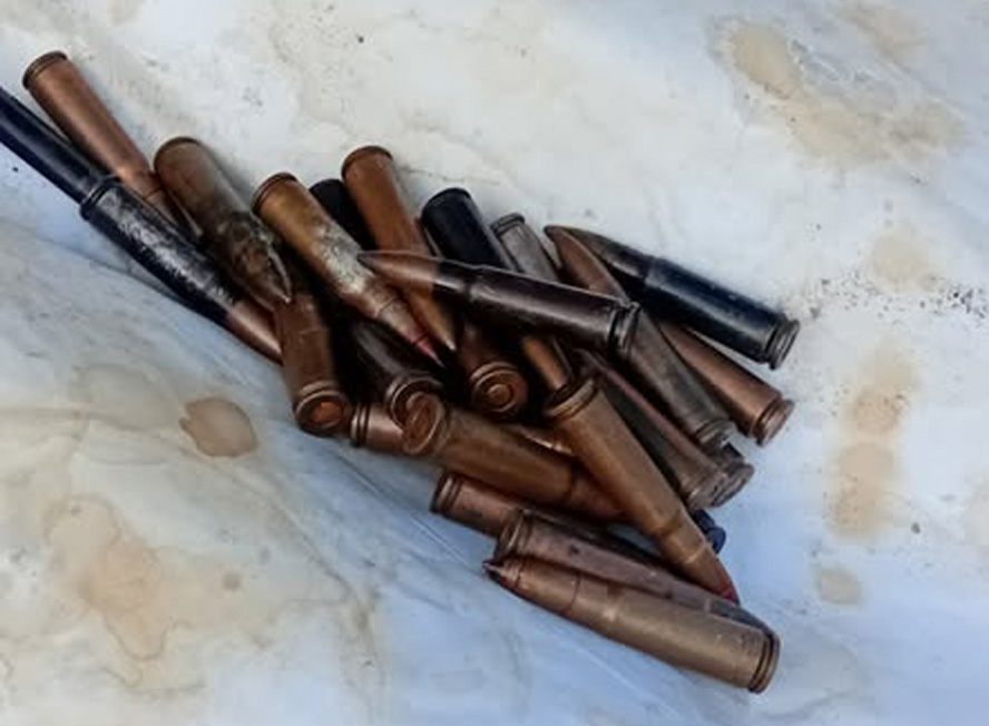 The detection was made jointly by the Police and the STF on Thursday. The items found concealed in the building included parts of a T-56 assault rifle, two magazines, three small shell rounds, and a reusable Claymore mine detonating device, wires, medical bandages, saline, and other field supplies.