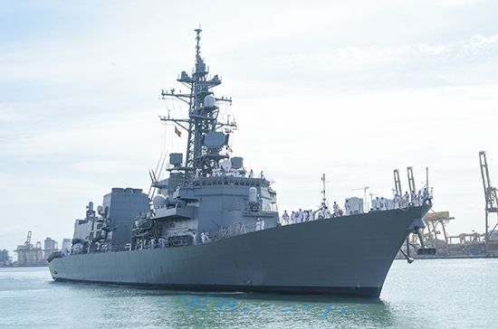 The Japan Maritime Self-Defense Force (JMSDF) Destroyer SAMIDARE arrived at the port of Colombo on Thursday (20) on an official visit. Upon her arrival, she was welcomed by the Sri Lanka Navy in accordance with naval traditions.