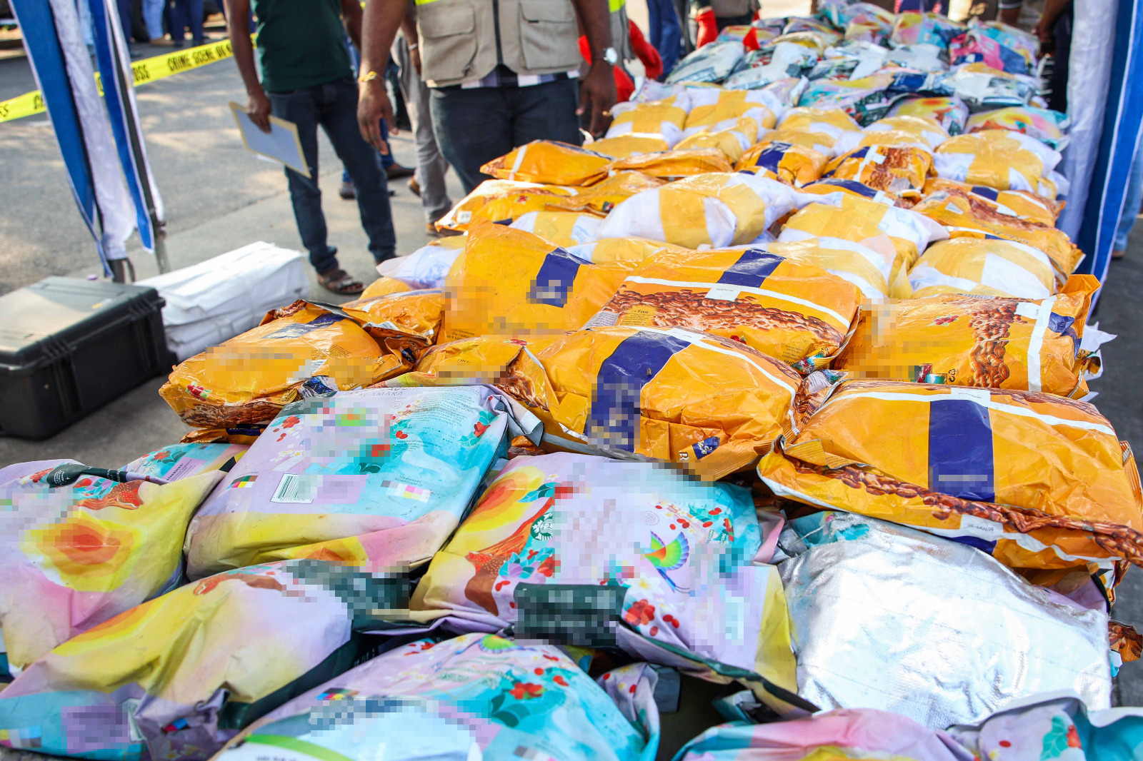 Following the mid-sea interception, the trawler was escorted to the Dikkowita Fisheries Harbour on the morning of 01 Apr 2026. A meticulous inspection conducted by the Police Narcotic Bureau (PNB) subsequently confirmed that the sacks (19) aboard contained more than 323kg of heroin.