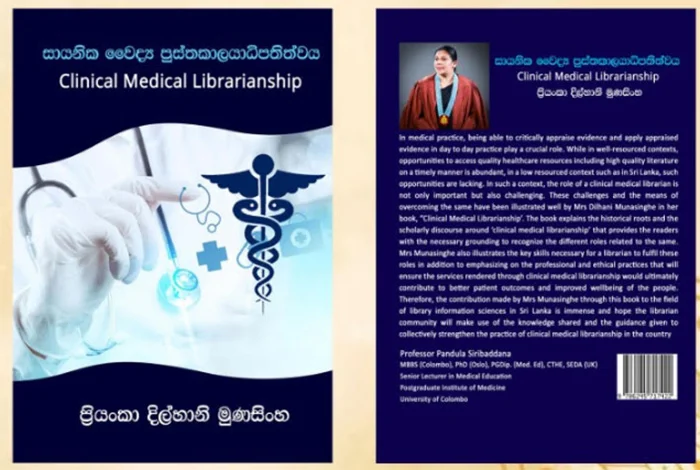 A book titled ‘Clinical Medical Librarianship’ by Priyanka Dilhani Munasinghe, senior assistant librarian of the Postgraduate institute of Medicine, University of Colombo will be launched today (20) at 9.30 am at the Auditorium of the University’s Staff Development Centre.