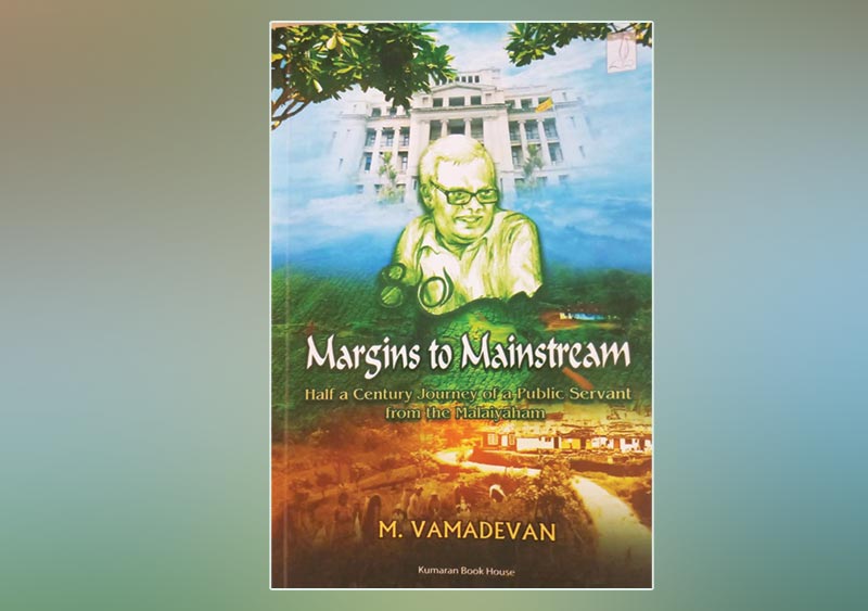 “Margins to Mainstream” by M. Vamadevan, is published by Kumaran Book House, and is priced at Rs. 1,500/=.