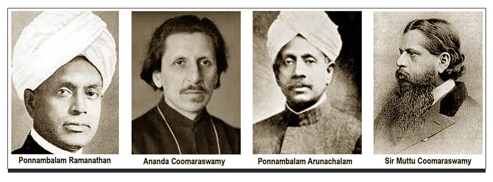 The names that come to mind include the brothers Ponnambalam Ramanathan and Ponnambalam Arunachalam and their kinsmen, Dr. Ananda Coomaraswamy and Sir Muttu Coomaraswamy. They came from the same highly educated and successful families of Jaffna.