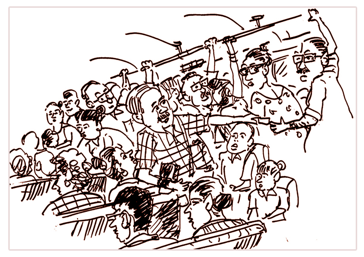 I observe him with a lot of respect. I admire him as an absolute professional, multitasking without end for 18-20 hours of the 24- hour-day, continuously keeping ‘law & order’ within the space of the bus. One is smartly dressed whilst the other cannot be paid much of a compliment about his attire. One chews betel and spits out at every bus stop whilst the other gulps a bit of water only to re- start the next string of commands, pleas and requests to his customers.