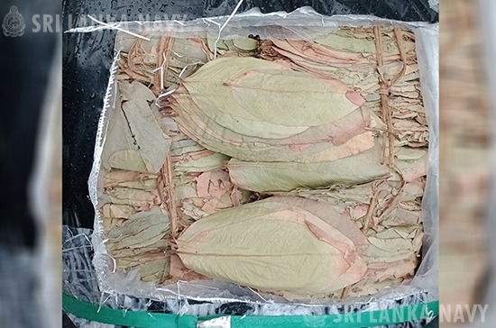 The Navy took hold of approx. 1416kg of smuggled Kendu leaves, during a search operation conducted in the sea area of Thalawila in Kalpitiya on 21 Oct 25.