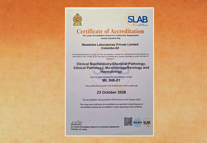 Commenting on the achievement, Nawaloka Laboratory Management said: “We are proud to announce this historic achievement as the first laboratory in Sri Lanka to attain ISO 15189:2022 accreditation, by the Sri Lanka Accreditation Board. This accomplishment reflects our enduring commitment to delivering quality healthcare services. By constantly upgrading and improving healthcare standards in Sri Lanka, we aim to provide our community with precise and reliable diagnostic results, fostering trust among patients, clinicians, and stakeholders.”