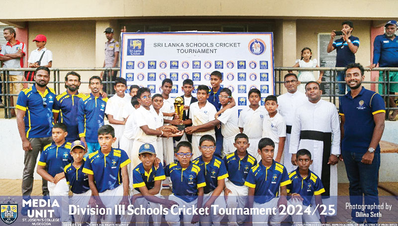 St. Joseph’s College, Nugegoda is making waves in school cricket, punching well above their weight. This week, their Under-13 side wrapped up a memorable campaign by finishing as joint champions in the Division III tournament, sharing the silverware with Wijayaba Vidyalaya, Hungama after the grand finale was washed out by rain.