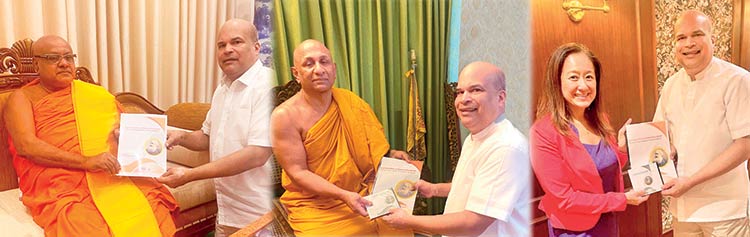 Pathfinder founder Milinda Moragoda, presented a compilation of the speeches delivered on the occasion of the first Olcott Memorial event to the Most Ven. Prof. Kotapitiye Rahula Thero, Ven. Prof. Kollupitiye Mahinda Sangharakkhitha Thero, and the US Ambassador to Sri Lanka Julie Chung.