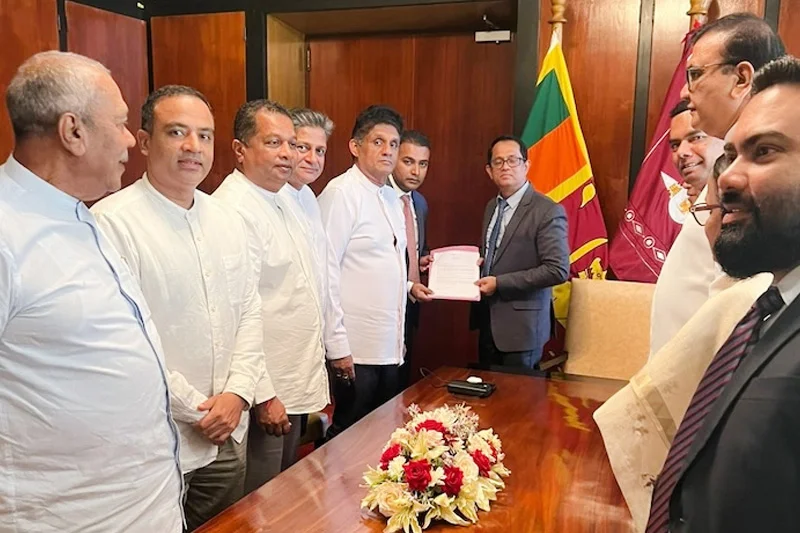The motion has been signed by MPs Sajith Premadasa, Anuradha Jayaratne, Mujibur Rahman, Dilith Jayaweera, Rohini Kumari Wijerathna, Suranga Rathnayaka, Chamara Sampath Dasanayake, K. Sujith Sanjaya Perera, J.C. Alawathuwala, Arjuna Sujeewa Senasinghe, B. Ariyawansha, Dilip Wedaarachchi, Kins Nelson, K. Kader Masthan, S.M. Marikkar, Dr. V.S. Radhakrishnan, M.A.M. Thahir, Rauff Hakeem, Dr. M.L.A.M. Hizbullah, Chamindranee Kiriella, Dr. Ramanathan Archchuna, Jagath Vithana, W. H. M. Dharmasena, R. M. Ranjith Madduma Bandara, Imran Maharoof, Hector Appuhamy, Namal Rajapaksa, Harshana Rajakaruna, and Gayantha Karunathilleka.
