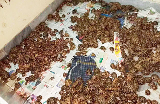 Customs officers have seized 206 live star tortoises listed as an endangered species while they were being smuggled to Malaysia in boxes labelled as ‘dried seafood’.