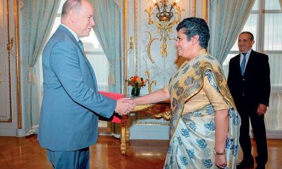 The Ambassador of Sri Lanka Manisha Gunasekera presented her Letters of Credence to Prince Albert II of the Principality of Monaco at the Salon des Glaces,...